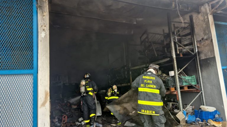 Playa del Carmen, Quintana Roo.- El Gobierno Municipal de Playa del Carmen, a través de la Secretaría de Protección Civil, Prevención de Riesgos y Bomberos, informa que, con pronta respuesta y trabajo coordinado, personal operativo acudió de inmediato al llamado de emergencia para controlar un incendio registrado en una bodega de refrigeración ubicada sobre el Boulevard Playa del Carmen, la cual fue consumida por las llamas.
