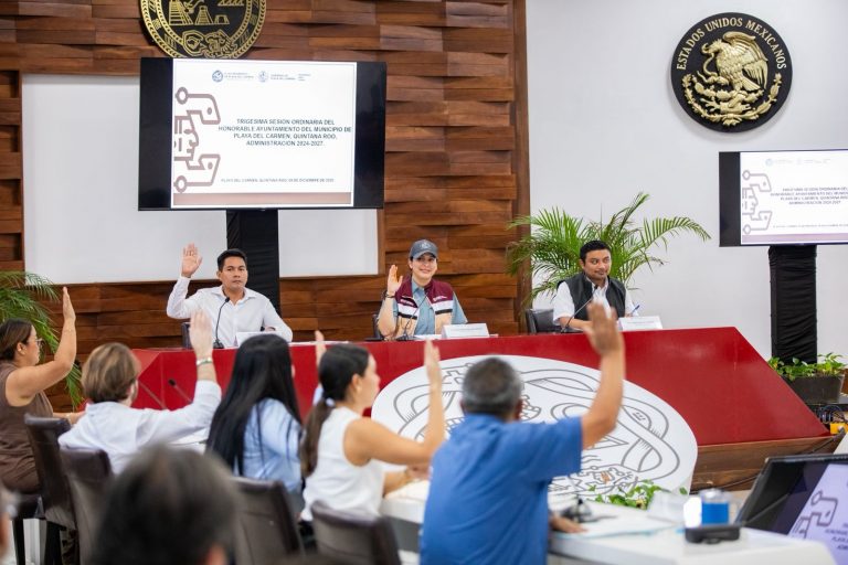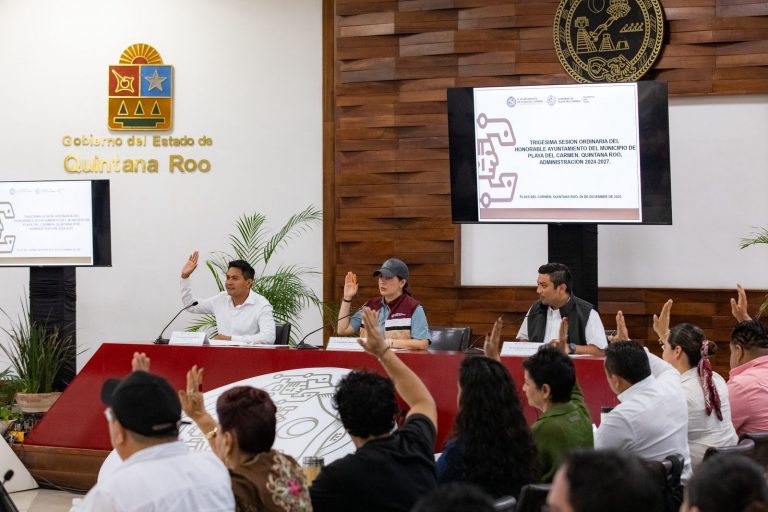 Playa del Carmen, Quintana Roo.— En sesión de Cabildo de Playa del Carmen, encabezada por la presidenta municipal Estefanía Mercado, se aprobó, por unanimidad, el Programa de Descuentos y Estímulos Fiscales del Impuesto Predial 2026, que beneficiará a miles de familias playenses con reducciones de hasta 25% por pago anticipado, así como estímulos especiales para personas adultas mayores, con discapacidad, jubiladas y pensionadas.