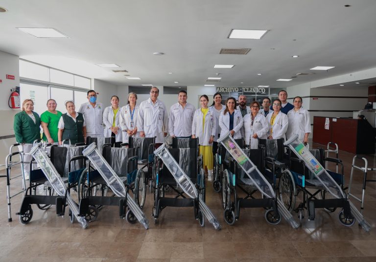 Playa del Carmen, Quintana Roo.- Con el firme compromiso de mejorar el bienestar de las familias, el presidente honorario del DIF Playa del Carmen, Eduardo Asencio Martínez, realizó la entrega de sillas de ruedas, andaderas y muletas al Hospital General del Bienestar, equipos que brindarán mayor independencia, seguridad y calidad de vida a los pacientes que los requieran.