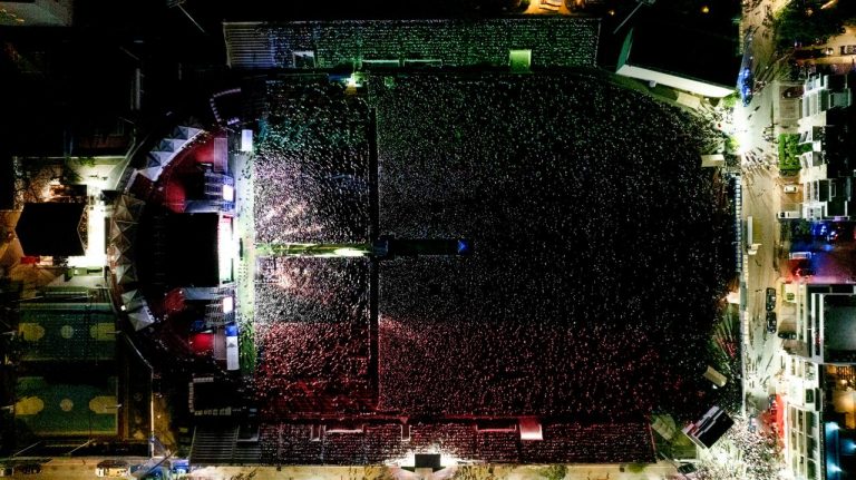Playa del Carmen, Quintana Roo.– En un hecho sin precedente en la historia de Playa del Carmen, la presidenta municipal Estefanía Mercado encabezó esta noche la ceremonia conmemorativa por el 215 aniversario del Grito de Independencia ante más de 50 mil personas reunidas en el estadio Mario Villanueva y sus alrededores, en una fiesta mexicana que estuvo amenizada por Grupo Frontera.