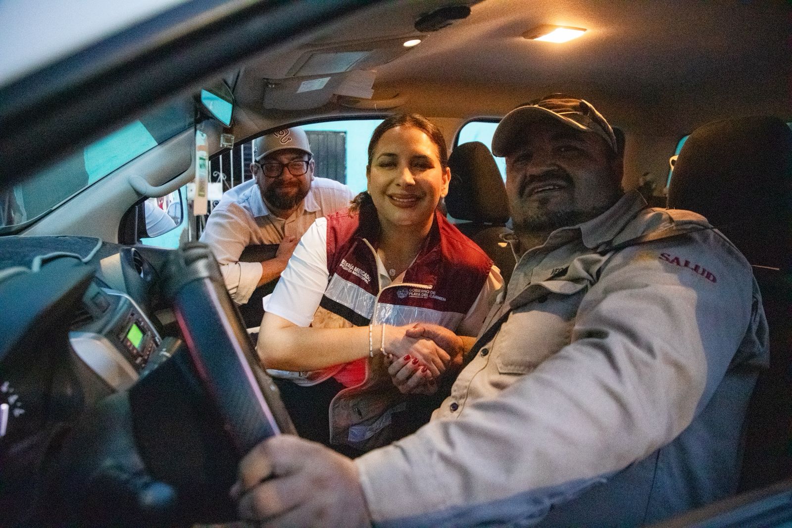 “Estamos reforzando las jornadas de fumigación en colonias, y pedimos a la ciudadanía que cuando vean pasar las unidades abran puertas y ventanas, para que el químico llegue a proteger sus hogares”, señaló durante el recorrido.