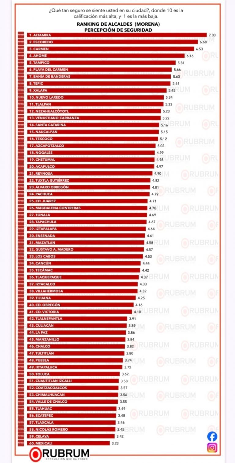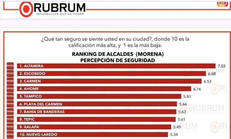 Playa del Carmen, Quintana Roo.-El municipio de Playa del Carmen, bajo el liderazgo de la presidenta municipal Estefanía Mercado, alcanzó el sexto lugar nacional en percepción de seguridad dentro del más reciente ranking de alcaldías de Morena, elaborado por Rubrum en agosto de 2025.