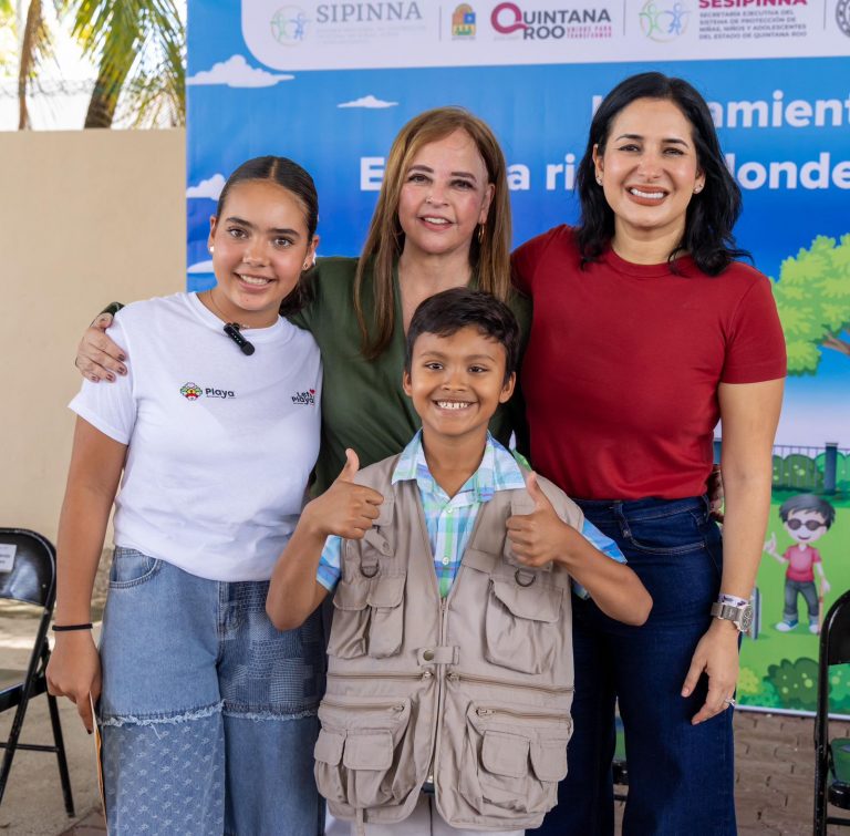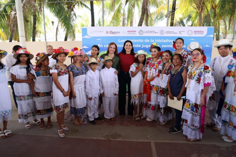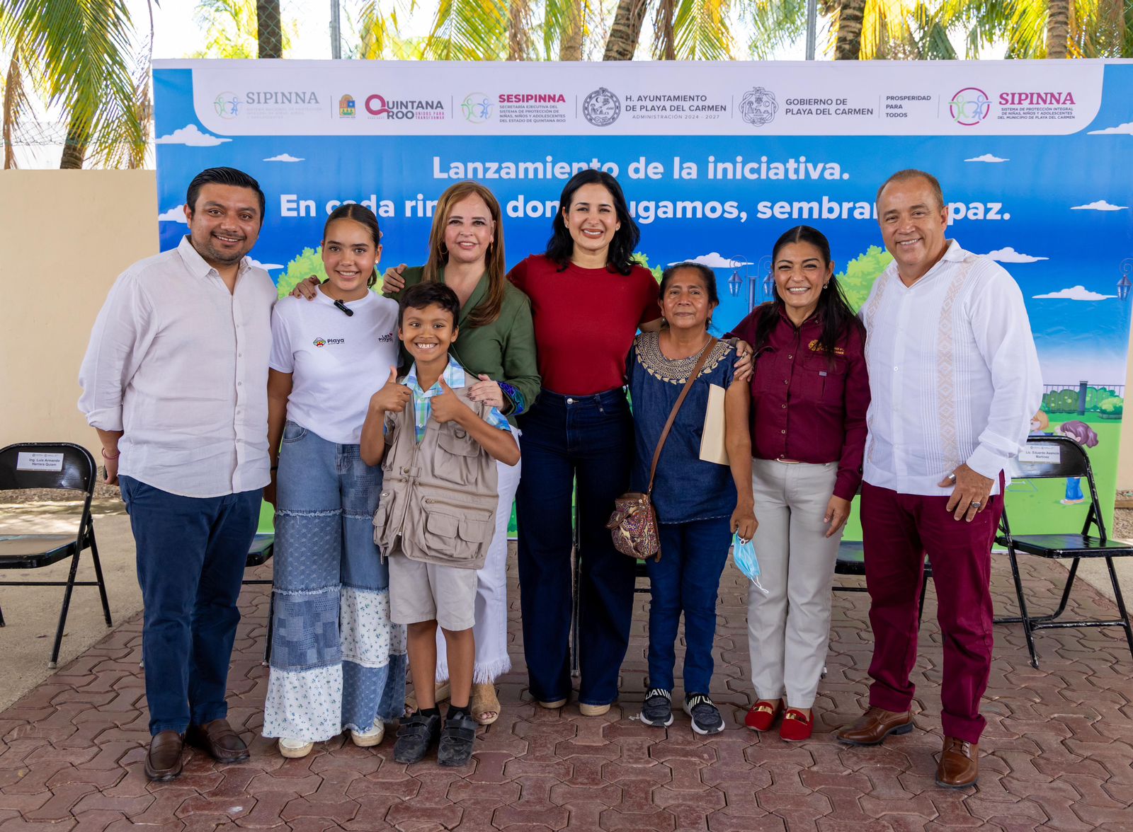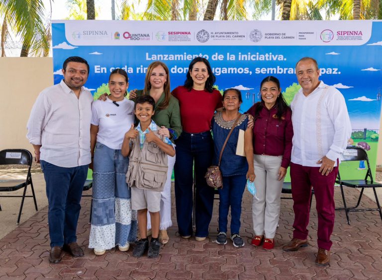 Playa del Carmen.— La presidenta municipal, Estefanía Mercado, y la secretaria ejecutiva nacional del Sistema de Protección Integral de Niñas, Niños y Adolescentes (SIPINNA) Lorena Villavicencio Ayala, pusieron en marcha la iniciativa “En cada rincón donde jugamos, sembramos paz”, en el domo de la colonia “La Guadalupana”, con un llamado a fortalecer entornos seguros y garantizar los derechos de niñas, niños y adolescentes.