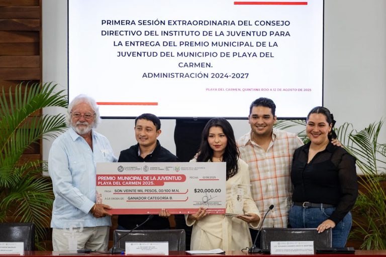 Playa del Carmen, Quintana Roo.– Jonathan Hernández Rendón, Daniela Santos Tun y Félix Moreno Amador fueron reconocidos con el Premio Municipal de la Juventud 2025, por su destacado desempeño en los ámbitos deportivo, educación, cultura, deportes y sociedad.
