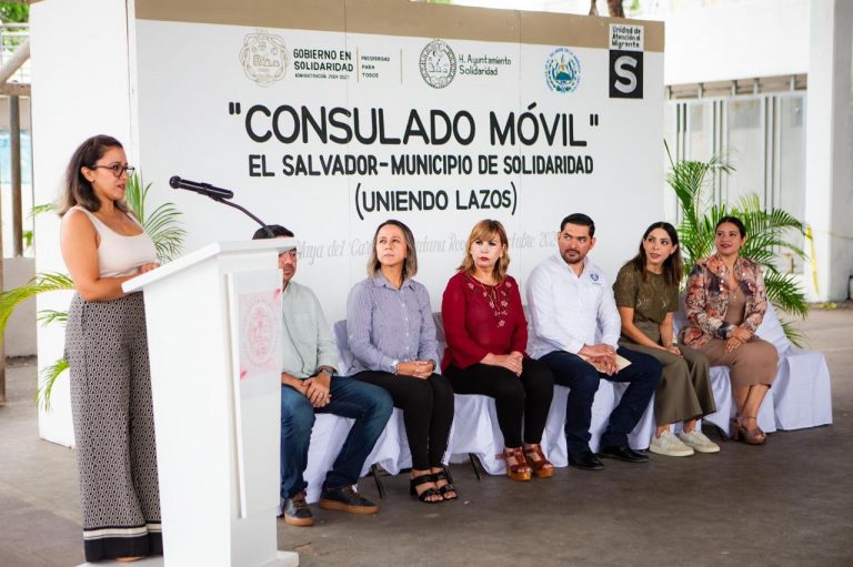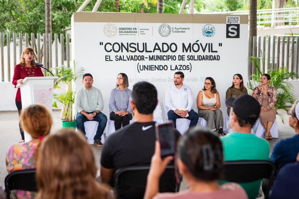 Playa del Carmen, Quintana Roo.- Con el objetivo de acercar servicios consulares a la comunidad salvadoreña en Solidaridad, este sábado se puso en marcha una jornada del Consulado Móvil de El Salvador, en la Unidad de Atención al Migrante, ubicada en el domo de la colonia Luis Donaldo Colosio.