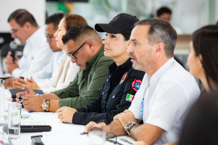 Acompañada por el secretario de Desarrollo Económico de Quintana Roo, Paúl Carrillo, la Alcaldesa destacó la necesidad de la coordinación efectiva con el sector empresarial para proteger a la población en momentos críticos.
