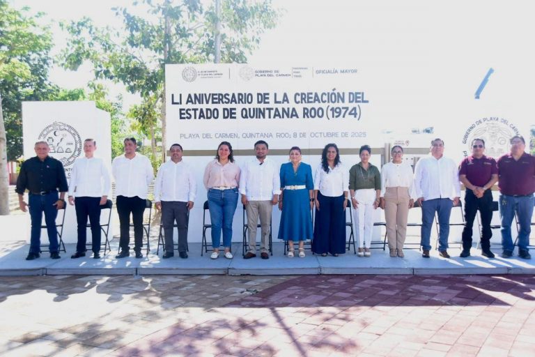 Playa del Carmen, Quintana Roo. – Con un acto cívico realizado en la Plaza 28 de Julio, el Ayuntamiento de Playa del Carmen conmemoró el 51 aniversario de la creación del Estado de Quintana Roo, resaltando la historia, fortaleza y desarrollo que han distinguido a la entidad a lo largo de más de cinco décadas.
