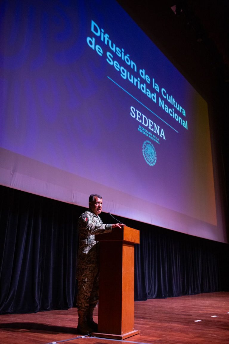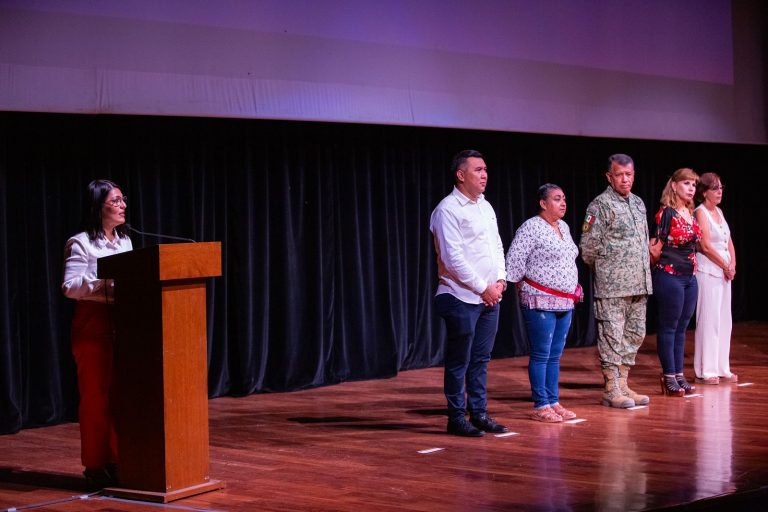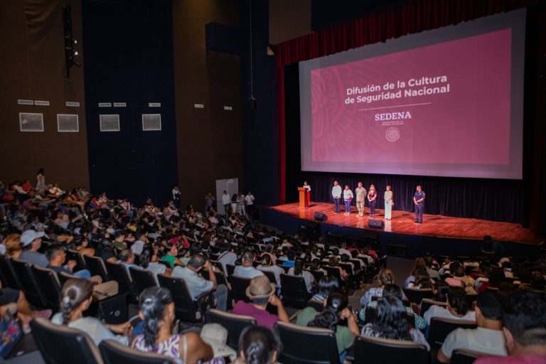 Playa del Carmen, Quintana Roo.— El compromiso para la construcción de la paz y el bienestar es fundamental para el desarrollo de Playa del Carmen, dijo la secretaria de Justicia Social y Participación Ciudadana, Deyanira Martínez, al participar esta tarde en la conferencia “Difusión de la Cultura de Seguridad Nacional”, dictada por el General de Brigada Diplomado de Estado Mayor Fidel Mondragón Rivero, Comandante de la 34ª Zona Militar, en el Teatro de la Ciudad.