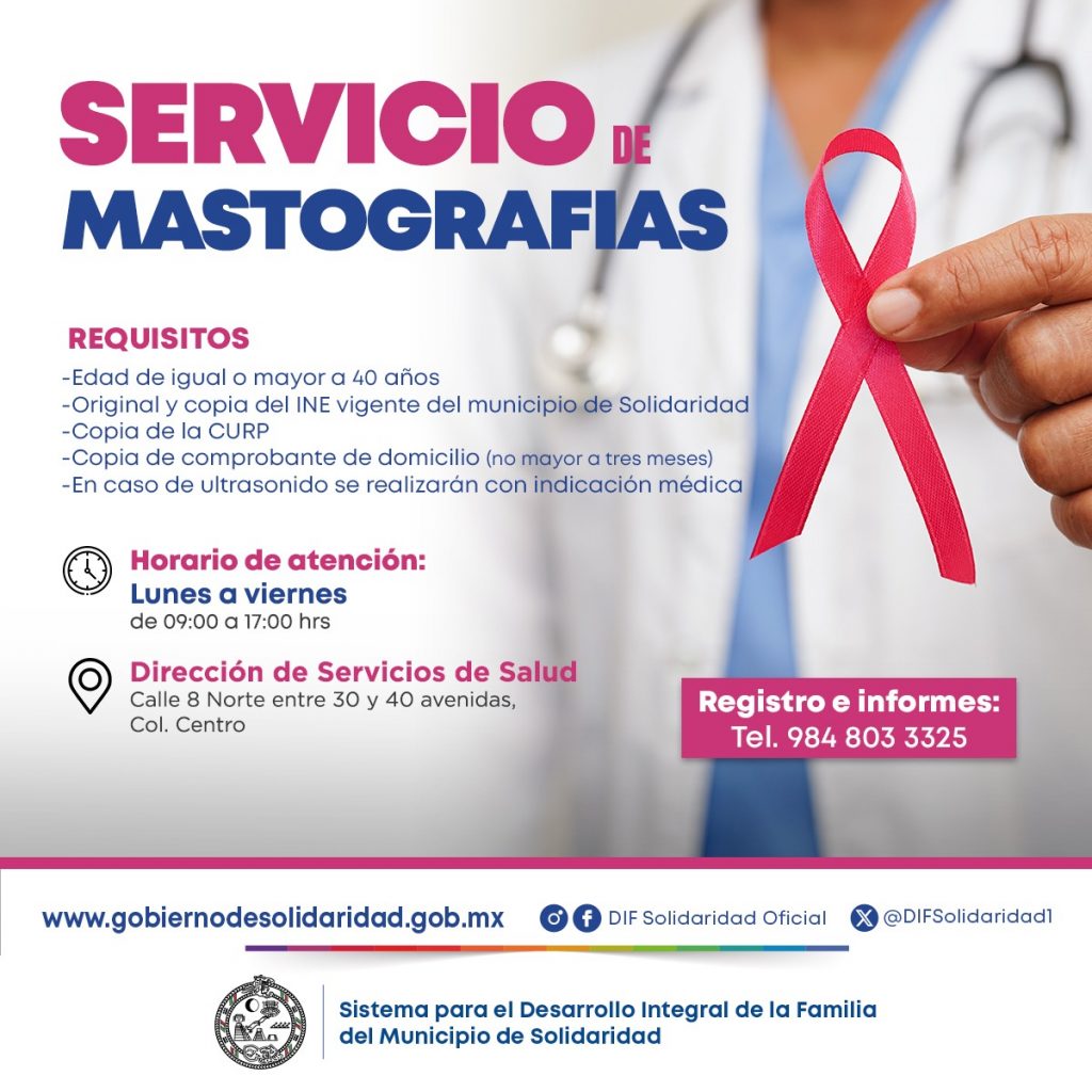 El Sistema para el Desarrollo Integral de la Familia (DIF) Solidaridad con el objetivo de prevenir a tiempo el cáncer de mama, dispone del programa permanente y gratuito de mastografías y ultrasonidos mamarios.