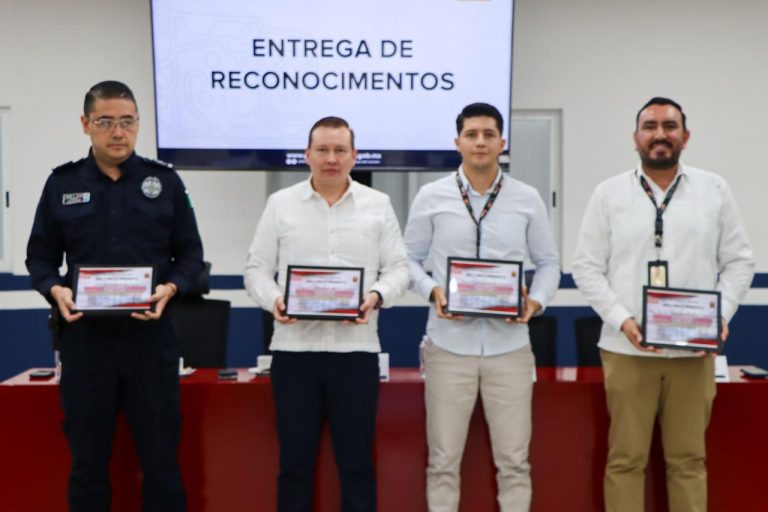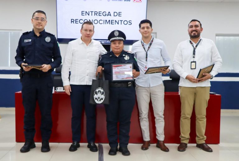 Playa del Carmen, Quintana Roo.— En el marco de las acciones impulsadas por la presidenta municipal Estefanía Mercado para fortalecer la seguridad y la coordinación con la iniciativa privada, la Secretaría de Seguridad Ciudadana Municipal (SSCM) recibió un reconocimiento por parte de la cadena comercial OXXO a elementos de la Policía Municipal por su labor y compromiso en la atención de delitos contra comercios.