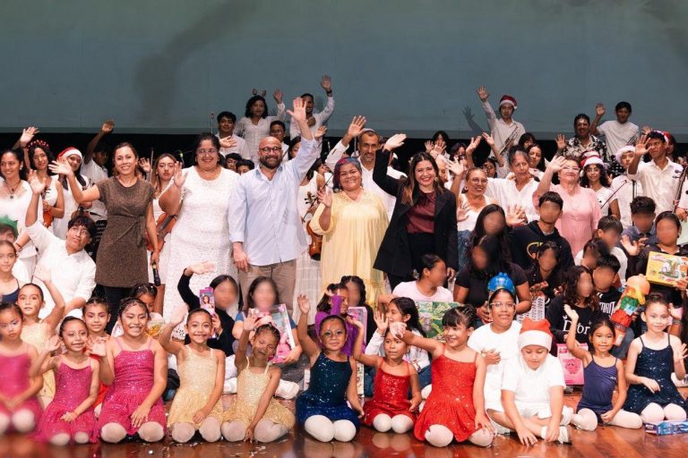 Playa del Carmen, Quintana Roo- Las familias playenses atendieron el llamado de la presidenta municipal Estefanía Mercado, y donaron más de 600 juguetes a las fundaciones “Breath of Live ministry” y “Contando con un amigo”, al tiempo que disfrutaron el concierto sinfónico de la Orquesta Sinfónica Infantil y Juvenil de Playa del Carmen y la actuación de las y los alumnos de los talleres del Instituto Municipal de la Cultura y las Artes de Playa del Carmen, en un Teatro de la Ciudad lleno.